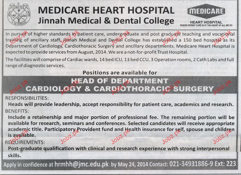 Apply as per details in job advertisement. Login to view further details of how to apply via https://www.jobz.pk online.