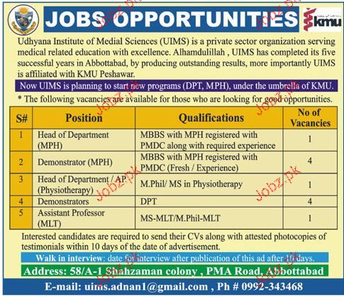 Apply as per details in job advertisement. Login to view further details of how to apply via https://www.jobz.pk online.