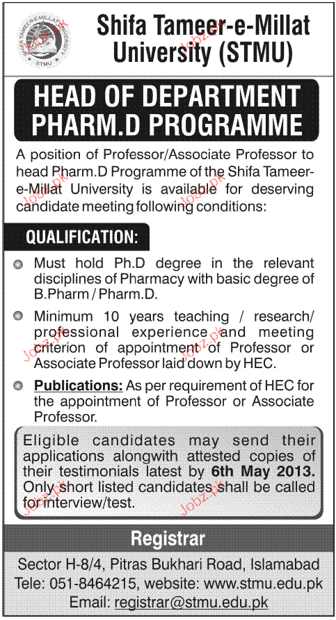 Apply as per details in job advertisement. Login to view further details of how to apply via https://www.jobz.pk online.