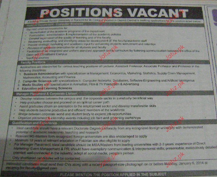 Apply as per details in job advertisement. Login to view further details of how to apply via https://www.jobz.pk online.