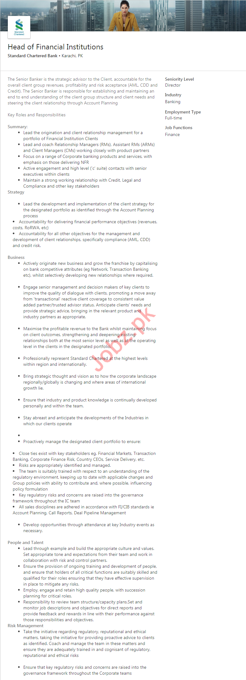 Latest Standard Chartered Bank Finance Posts Karachi 2025