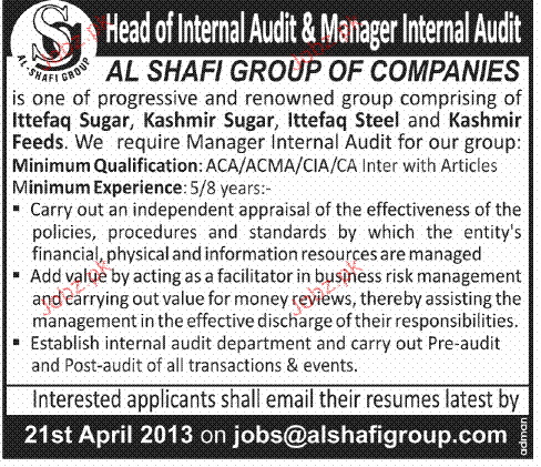 Head Of Internal Audit And Manger Internal Audit Wanted