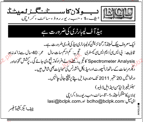 Apply as per details in job advertisement. Login to view further details of how to apply via https://www.jobz.pk online.