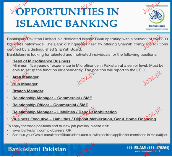 Apply as per details in job advertisement. Login to view further details of how to apply via https://www.jobz.pk online.