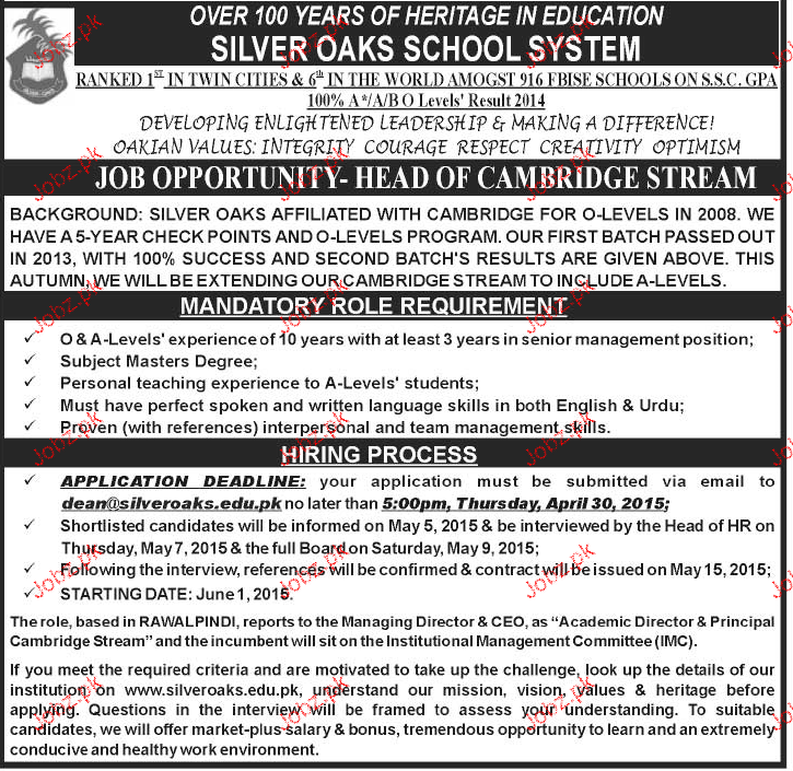 Head Of School Job In Silver Oaks School System