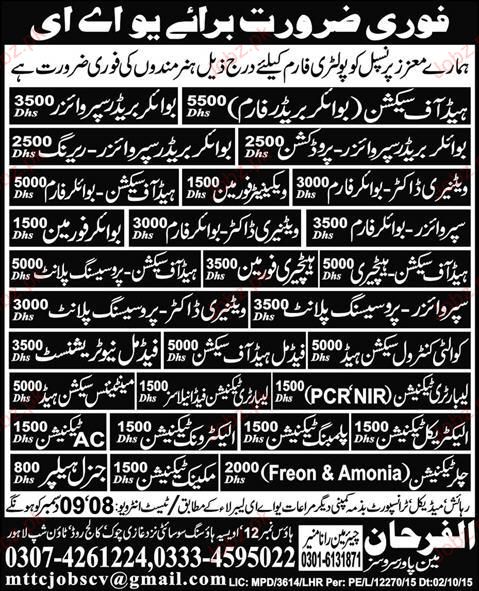 Head of Section, Boiler Bread Supervisor, Foreman Wanted