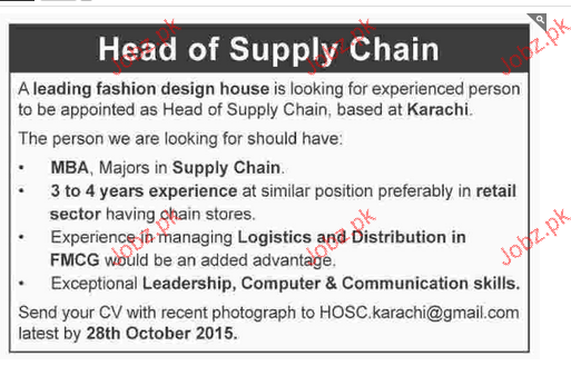 Apply as per details in job advertisement. Login to view further details of how to apply via https://www.jobz.pk online.