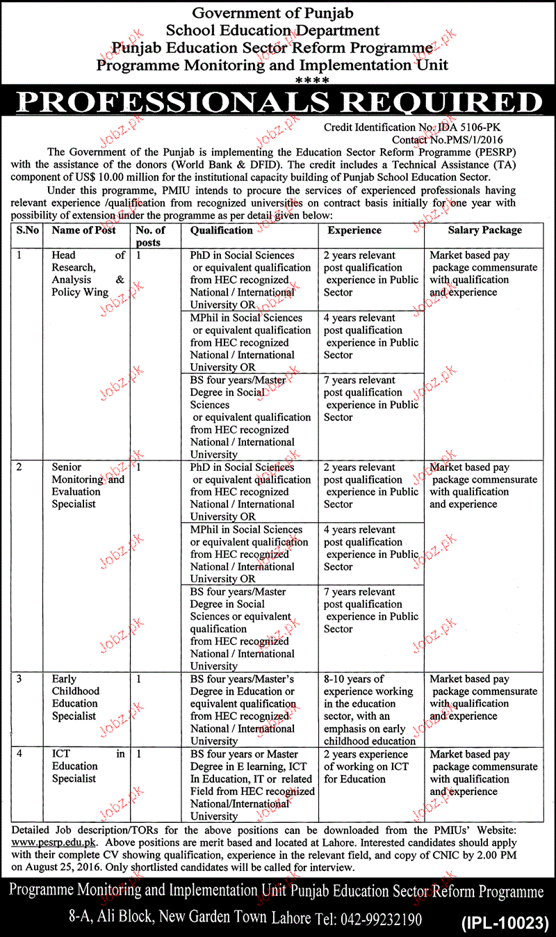 Latest Government Management Posts Lahore 2025