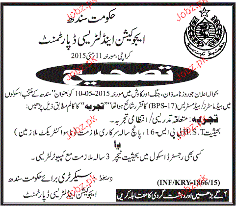 Apply as per details in job advertisement. Login to view further details of how to apply via https://www.jobz.pk online.