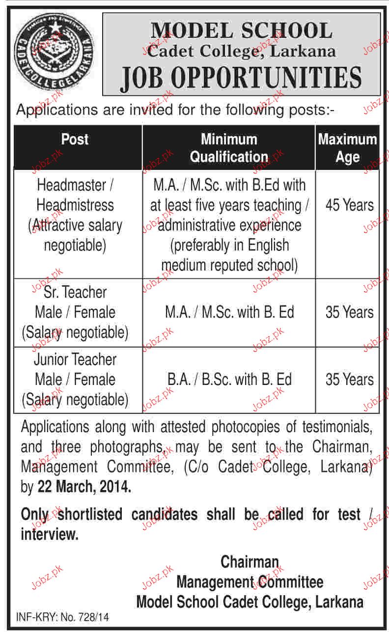 Headmaster, Junior Teachers And Senior Teachers Job In Model