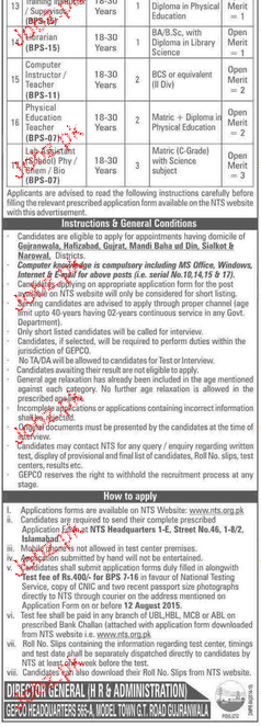 Latest Government Department Teaching Posts Gujranwala 2025