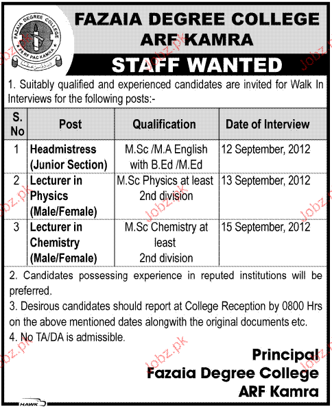 Apply as per details in job advertisement. Login to view further details of how to apply via https://www.jobz.pk online.