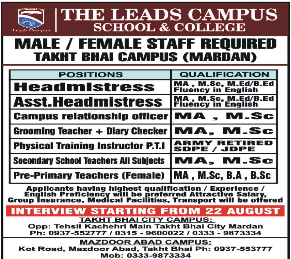 Apply as per details in job advertisement. Login to view further details of how to apply via https://www.jobz.pk online.