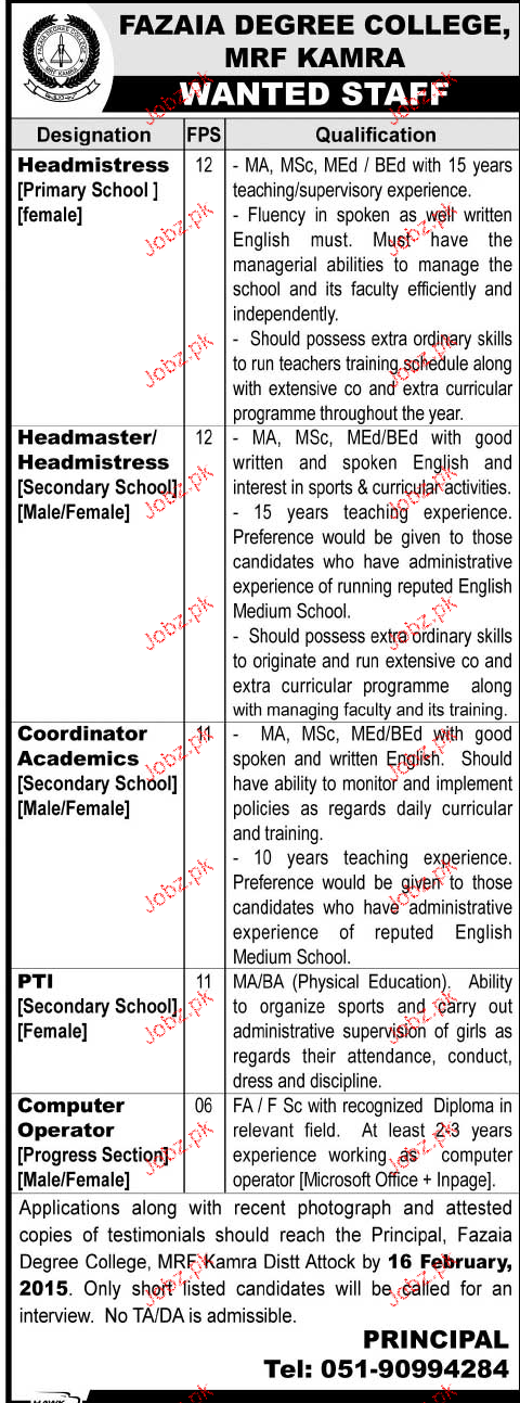 Apply as per details in job advertisement. Login to view further details of how to apply via https://www.jobz.pk online.
