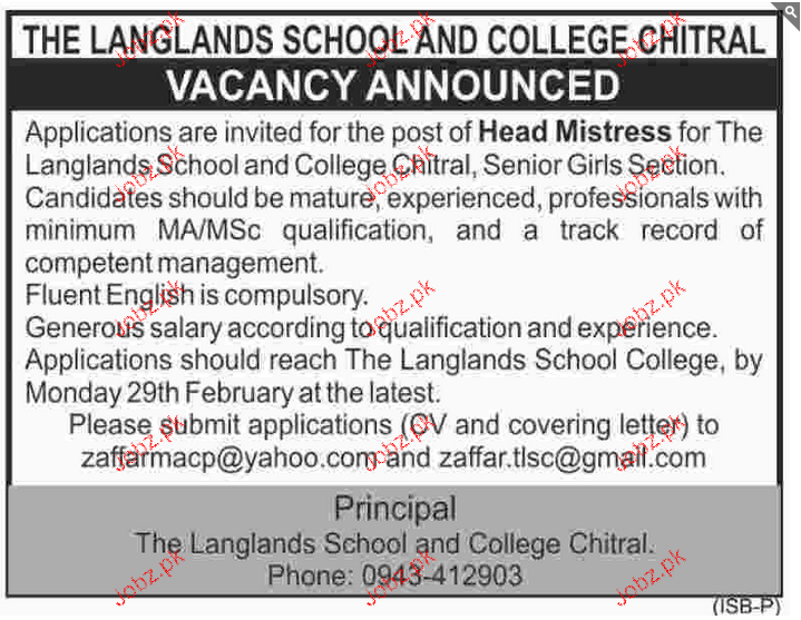 Apply as per details in job advertisement. Login to view further details of how to apply via https://www.jobz.pk online.