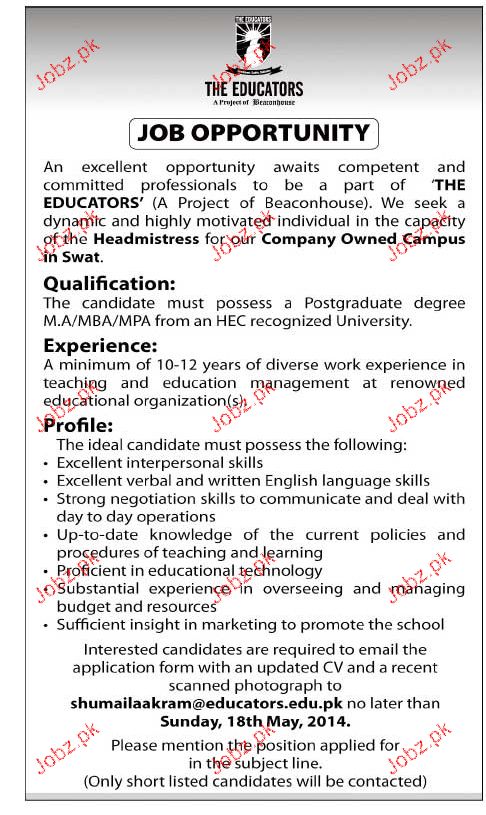 Apply as per details in job advertisement. Login to view further details of how to apply via https://www.jobz.pk online.