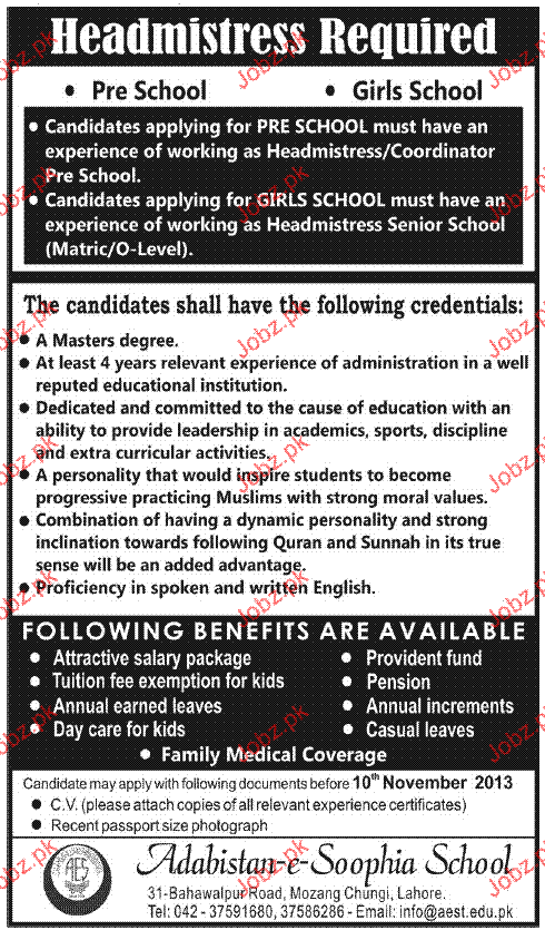 Apply as per details in job advertisement. Login to view further details of how to apply via https://www.jobz.pk online.
