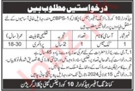 Headquarter 10 Core Chaklala Cantt latest Private Labor jobs and others can be applied till 15 July 2024 or as per closing date in newspaper ad. Read complete ad online to know how to apply on latest Headquarter 10 Core Chaklala Cantt job opportunities.