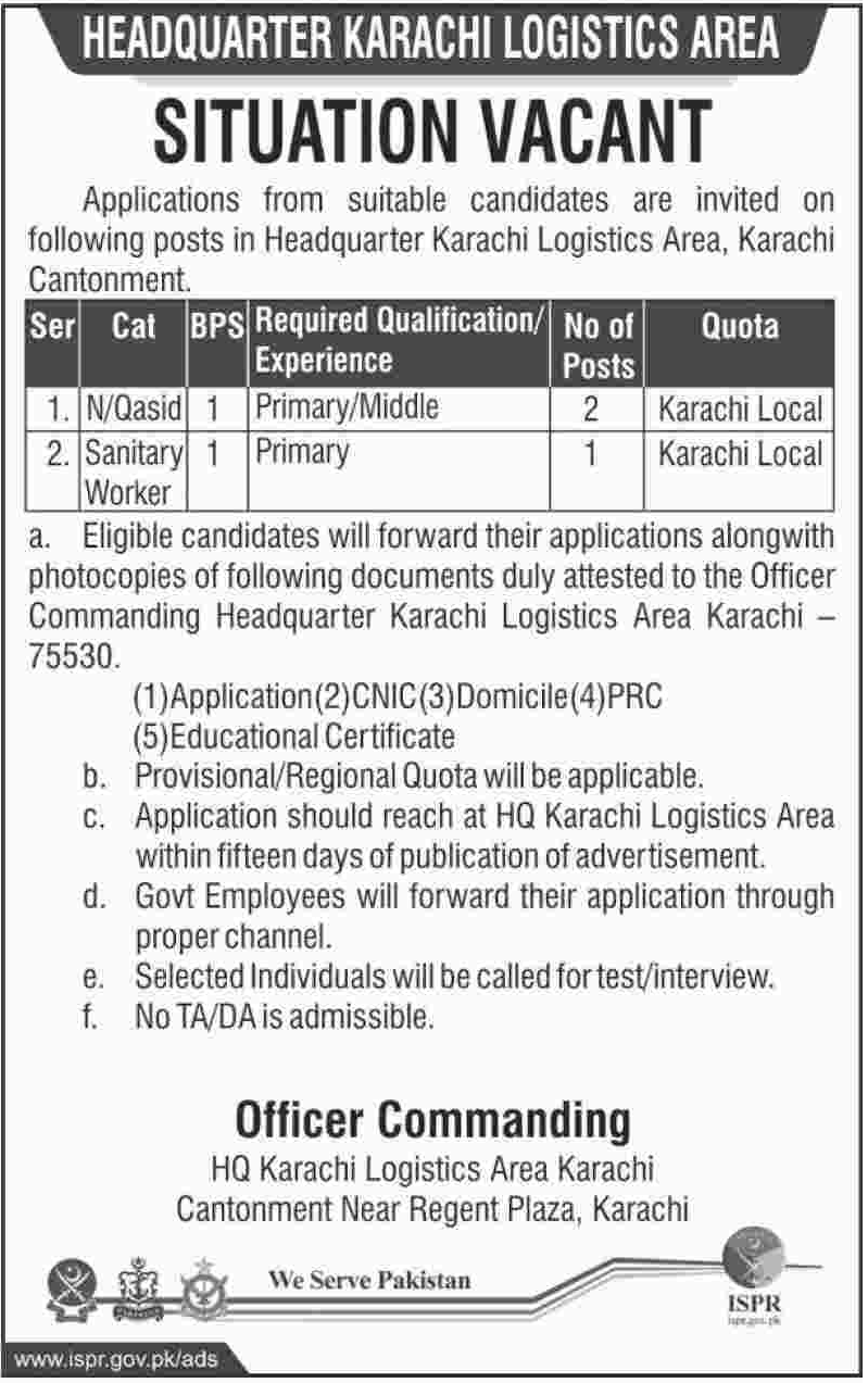 Latest Headquarter Logistics Area Labor Posts Karachi 2025