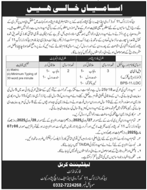 Headquarter Log 11 Core RV&F Branch Peshawar Jobs 2025