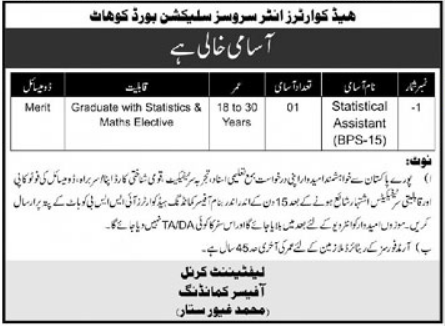 Headquarters Inter Services Selection Board Job In Kohat KPK