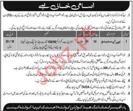 Headquarters Quetta Logistic Area Quetta Cantt Job 2019