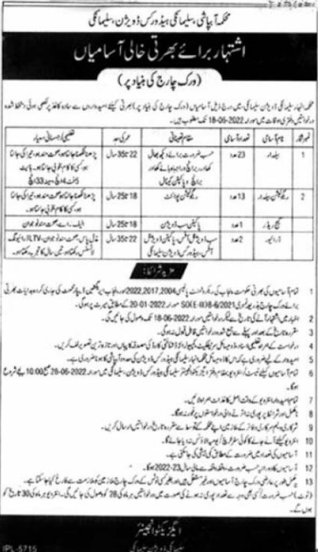 Vacancies in Irrigation Department Advertisement June 2022