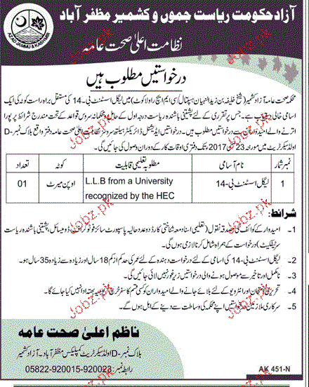 Health Department Govt of AJK Job Open of Legal Assistant