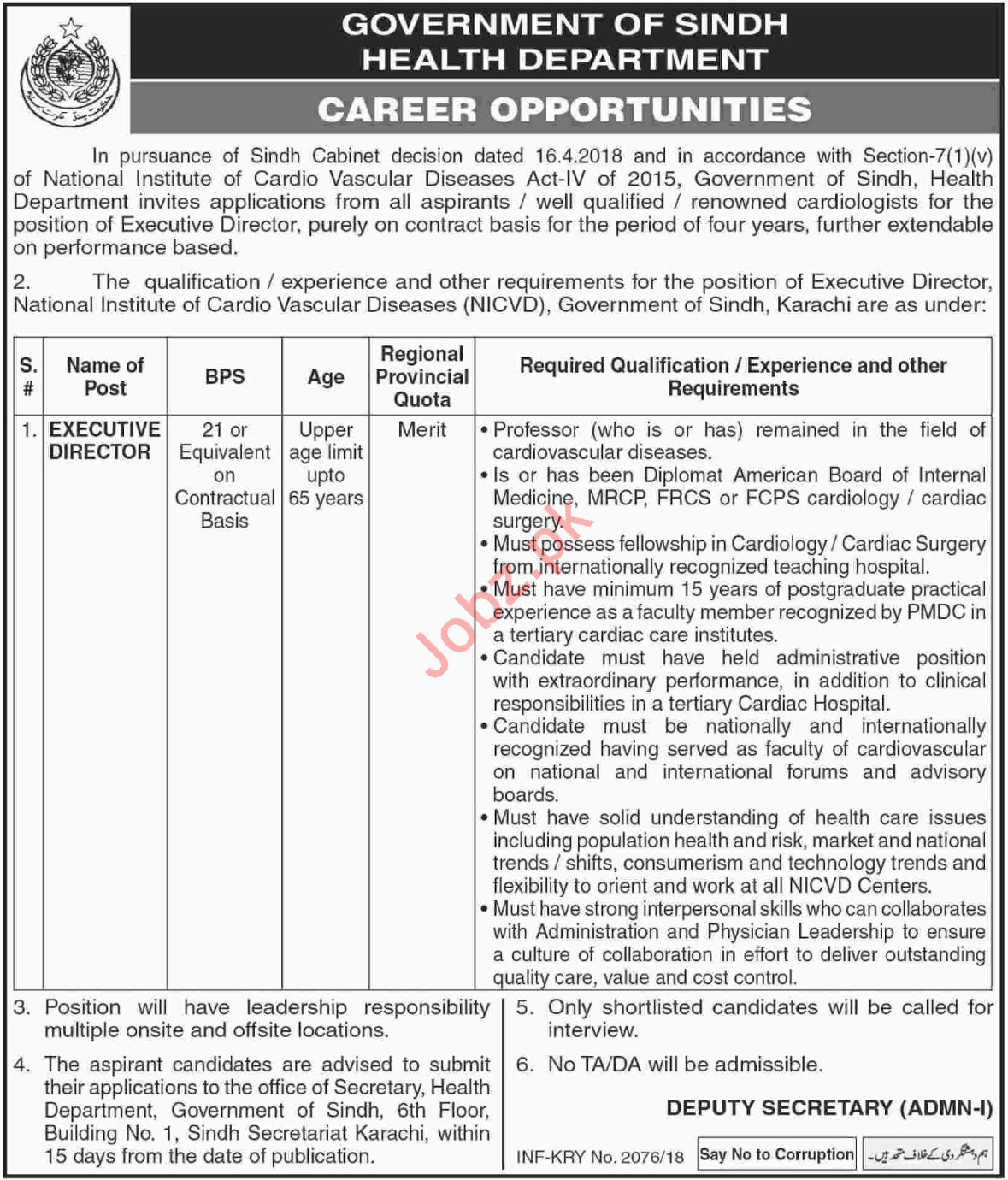 Apply as per details in job advertisement. Login to view further details of how to apply via https://www.jobz.pk online.