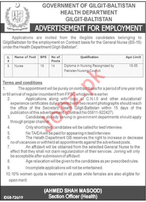 Health Department Jobs For Nurses In Gilgit Baltistan