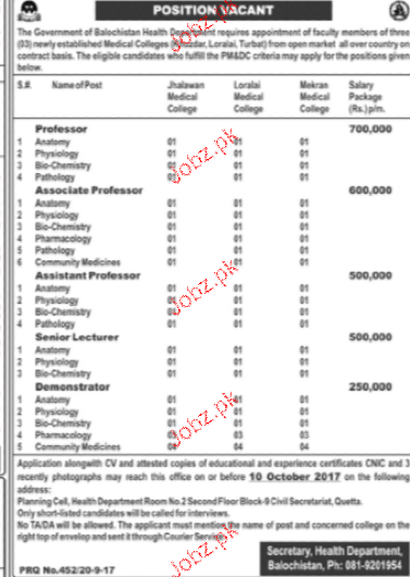 Apply as per details in job advertisement. Login to view further details of how to apply via https://www.jobz.pk online.