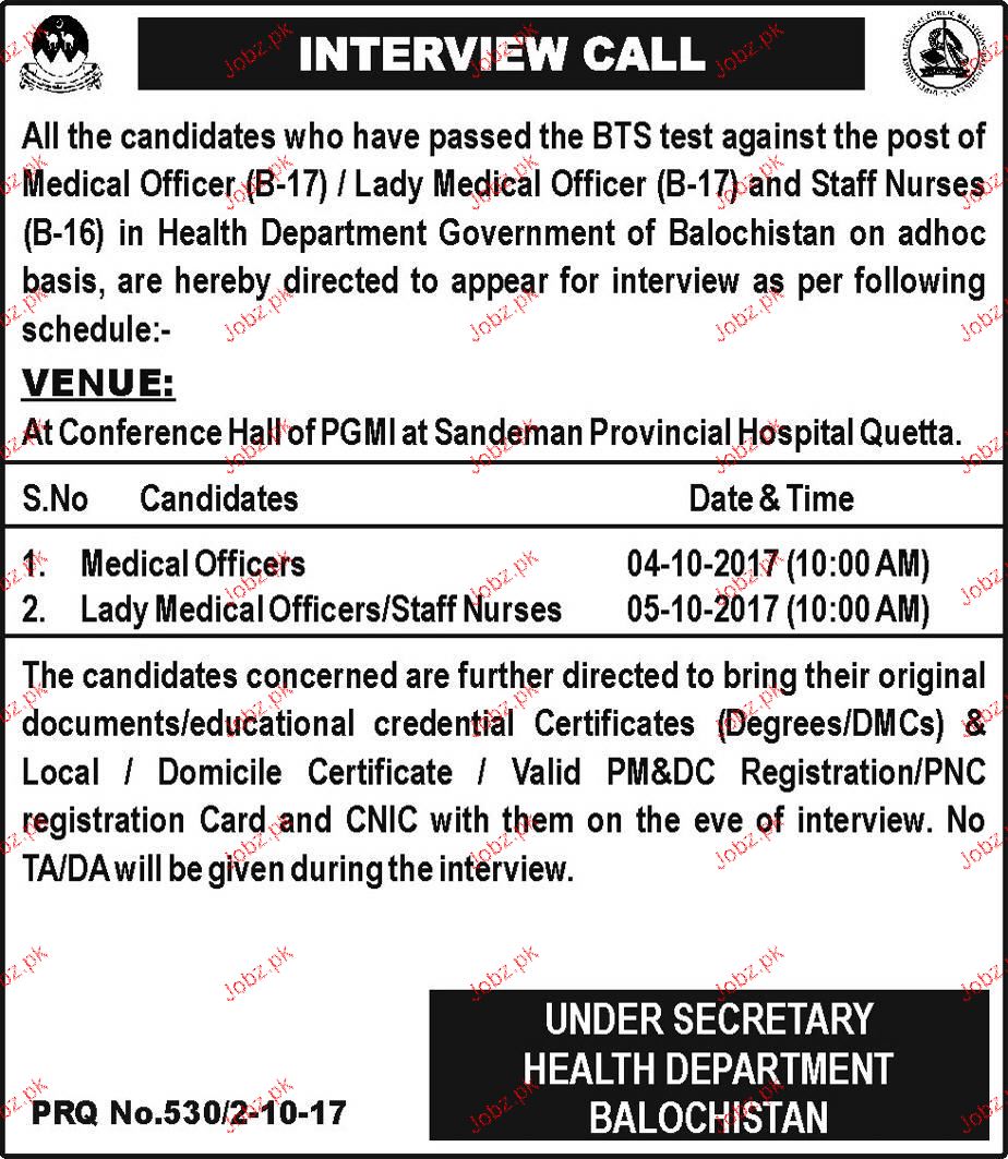 Latest Health Department Medical Posts Quetta 2025