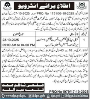 Health Department invites applications for job positions advertised in daily Jang dated 18 October 2025 for following vacancies in Killa Abdullah, killa abdullah Balochistan Pakistan.