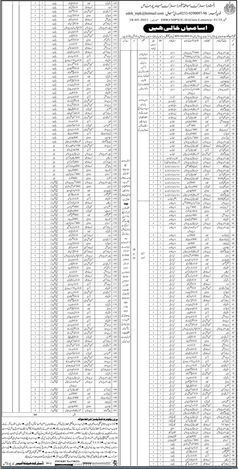 Health Department Sindh Jobs 2021 in Mirpurkhas