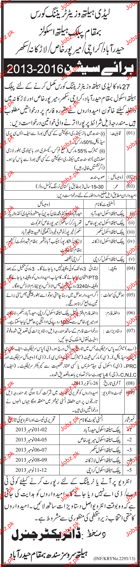 Health Service Hyderabad Admission in Lady health Visiting Course in Karachi Read newspaper ad for exact details.