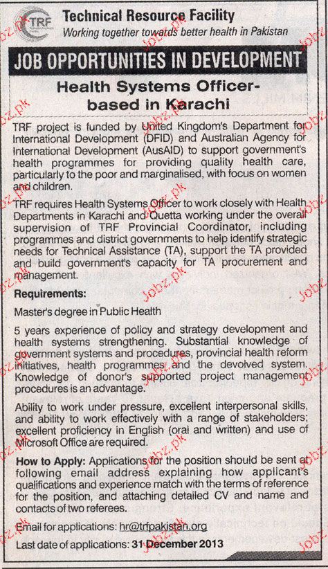 Apply as per details in job advertisement. Login to view further details of how to apply via https://www.jobz.pk online.
