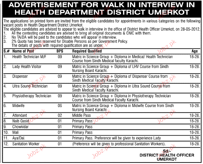Apply as per details in job advertisement. Login to view further details of how to apply via https://www.jobz.pk online.