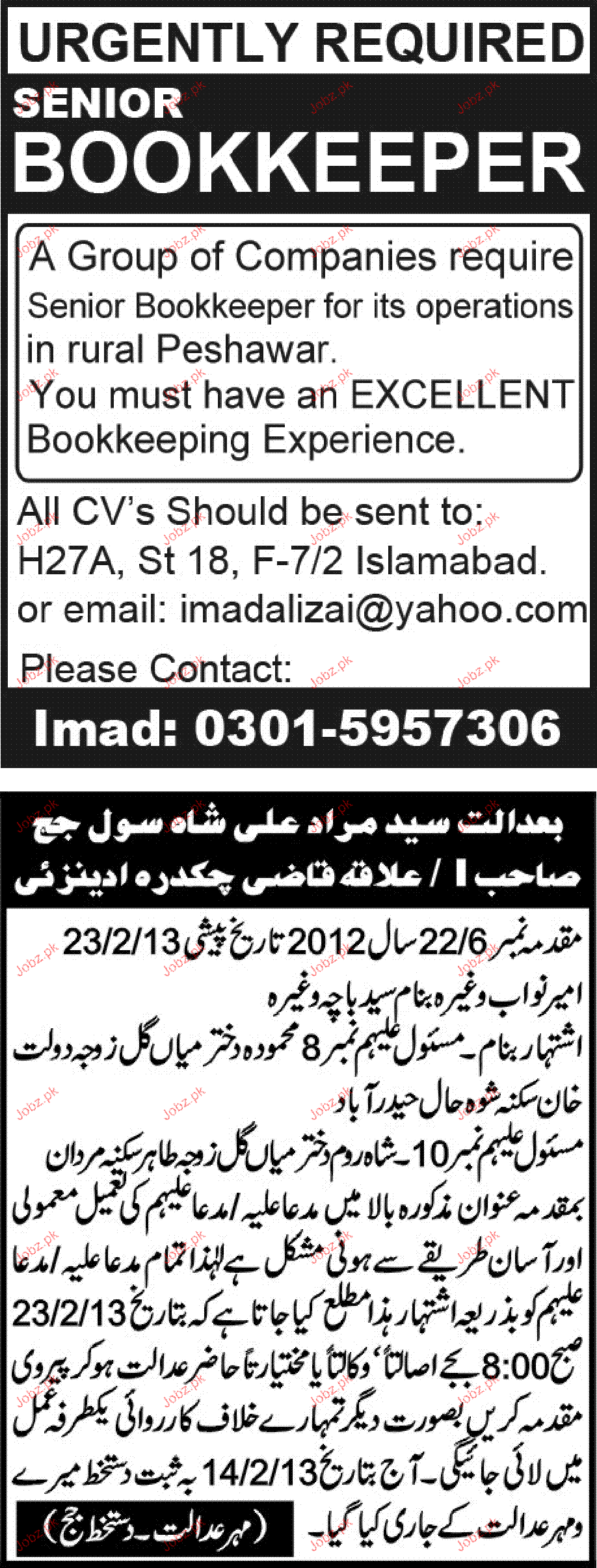 Apply as per details in job advertisement. Login to view further details of how to apply via https://www.jobz.pk online.