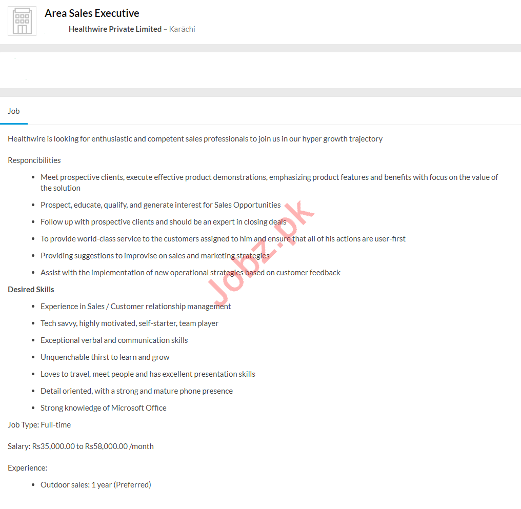 Latest Healthwire Pvt Ltd Sales Posts Karachi 2025