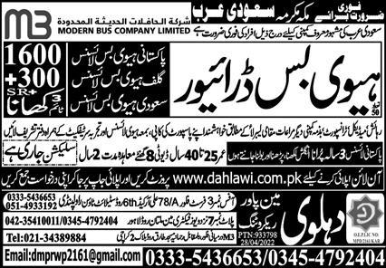 Dahlawi Manpower Recruiting Makkah, makkah Saudi Arabia invites applications from eligible candidates for the post of htv driver, driver, heavy bus driver and bus driver as per advertisement of May 13, 2022 published in daily Express Newspaper. Matric and Intermediate etc. educational qualification will be preferred.