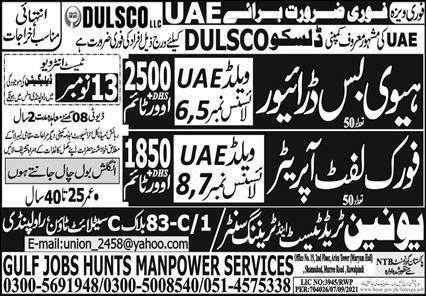 Heavy Bus Driver & Fork Lift Operator Jobs 2021 in UAE