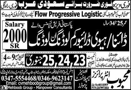 Apply at Mehboob Enterprises Overseas Employment Promoters latest Overseas jobs in Driving and departments before closing date which is around January 25, 2024 or as per closing date in newspaper ad. Read complete ad online to know how to apply on latest Mehboob Enterprises Overseas Employment Promoters job opportunities. Learn today skills like English (UK) and Driving to apply confidently on these Mehboob Enterprises Overseas Employment Promoters jobs. Salary varies from 152000. Earn more by overtime. Employer provides transport, medical and accommodation facility.