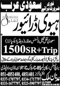 Adnan Malik Enterprises jobs advertisement dated about 30 August 2022 in daily Express Newspaper invites application for the vacant post of driver, htv driver and heavy driver in Riyadh, dammam Saudi Arabia. Matric and Intermediate etc. educational qualification will be preferred.