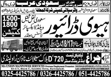 Heavy Driver & HTV Driver Jobs 2025 in Saudi Arabia