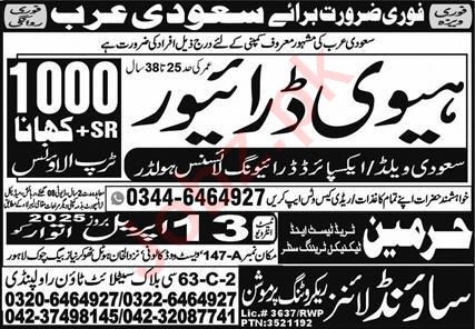 Vacant posts including heavy driver are announced in Sound Lines Recruiting Promotion Saudi Arabia, saudi arabia Saudi Arabia as per 14 April 2025 advertisement in daily Express Newspaper. Candidates with Middle, Matric and Primary etc. educational background will be preferred.