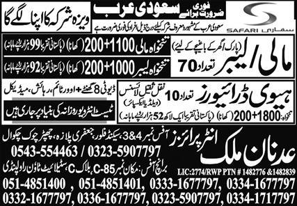 Vacant posts including gardener, driver, heavy driver and mali are announced in Adnan Malik Enterprises Riyadh, makkah Saudi Arabia as per 4 April 2023 advertisement in daily Express Newspaper. Candidates with Matric, Intermediate and Middle etc. educational background will be preferred.