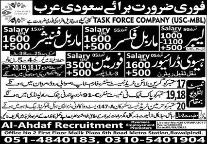 Al Ahdaf Recruitment Overseas Employment Promoters is looking for candidates for following posts as per job advertisement published in daily Express Newspaper of September 16, 2022 for location Madina, dammam Saudi Arabia: