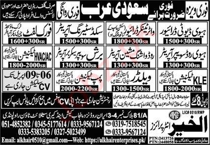 Al Khair Enterprises invites applications for job positions advertised in daily Express dated 6 April 2025 for following vacancies in Riyadh, riyadh Saudi Arabia.