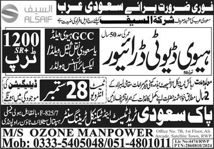 Pak Saudi Trade Test & Technical Training Center latest Overseas Driving jobs and others can be applied till 28 September 2024 or as per closing date in newspaper ad. Read complete ad online to know how to apply on latest Pak Saudi Trade Test & Technical Training Center job opportunities. Salary varies from 90000. Overtime might be allowed. Facilities like accommodation, transport and medical may be provided.