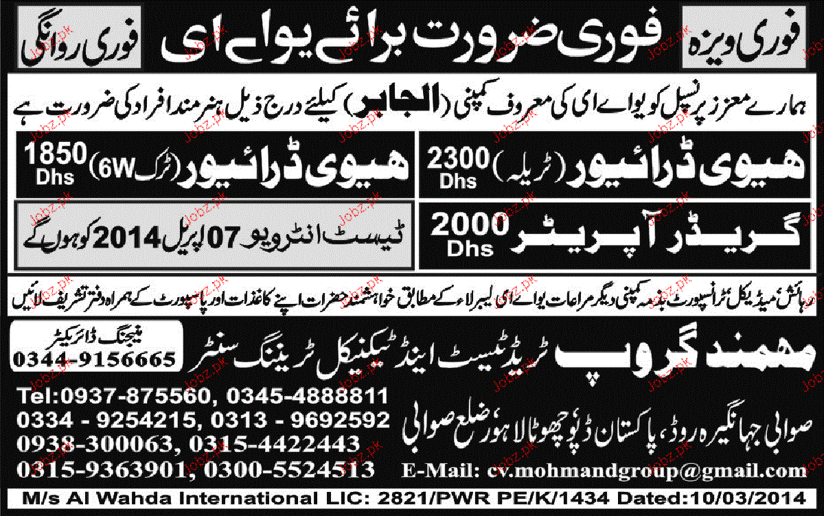 Apply as per details in job advertisement. Login to view further details of how to apply via https://www.jobz.pk online.